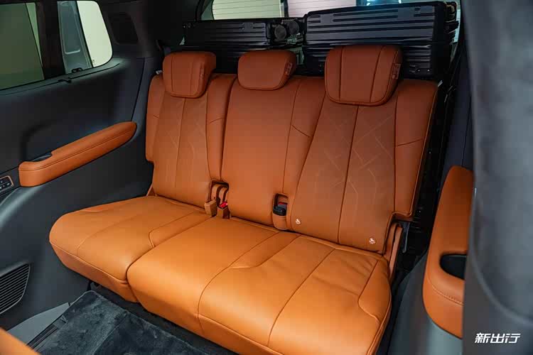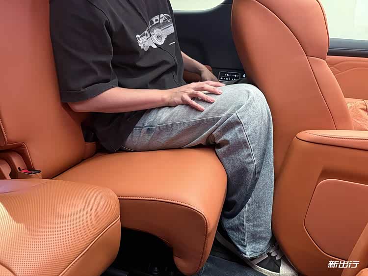 第三排座椅同样采用 Nappa 真皮材质,舒适性良好,支持靠背与前后调节,且前后移动的滑轨范围非常大。而调节面板放置在第三排两侧,并且控制面板还可控制第二排座椅,提供了比较灵活的调节空间。