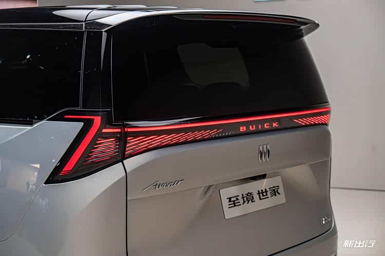 尾标方面,至境世家有着三个标识——左上角为专属的艾维亚标准,左下角为车型名 GL8 ENCASA,保留了标志性的 GL8 标志;右下角则是上汽通用。