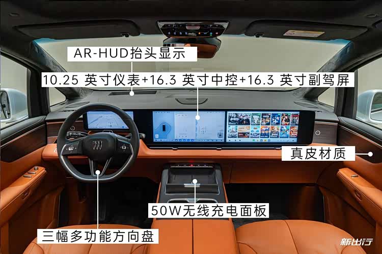 50 英寸全景 AR-HUD 是同级别少见的配置,投射面积宽大,集成导航箭头、车速、ADAS 等关键信息,直接投射于驾驶视野前方,实现 “眼不离路” 的安全交互。