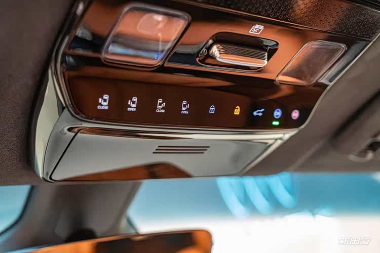 车顶区域集中了车辆解锁、后排侧滑门开关、SOS、后遮阳帘等控制按键,布局合理。