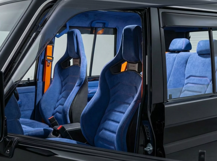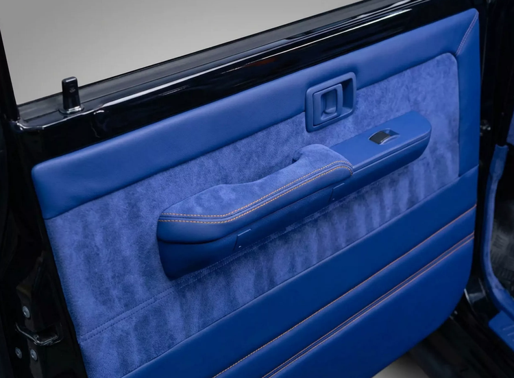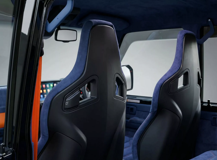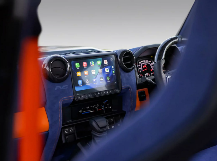 PVS Automotive还将原厂的中控屏替换为定制的全新9英寸中控屏,虽然屏幕的尺寸没有改变,但材质和功能都做了一定程度的升级。整个内饰不仅仅是座椅,几乎全部使用深蓝色的Alcantara面料进行了包覆,然后采用橙色点缀,让内饰看起来立马高档了不止两三个档次。