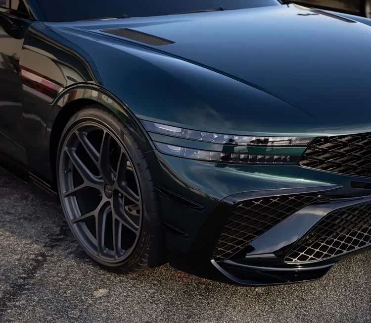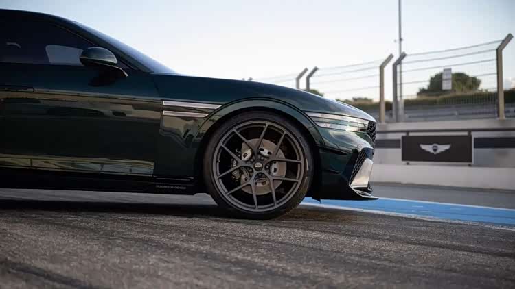 侧面的视觉观感更佳,流线型设计,溜背造型,还配备了车顶扰流板和上翘的小鸭尾,看起来着实有点性感。门把手采用了隐藏式设计,轮毂造型也相当运动,且进行了熏黑处理,质感上没话说。尺寸上,捷尼赛思G90 Wingback长度5.1米,轴距3.2米,在空间上毋庸置疑。