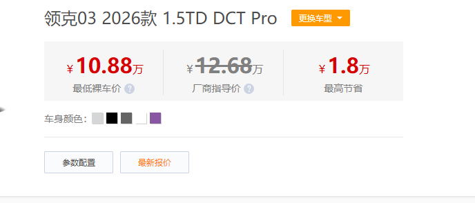 领克03坐不住了!最高优惠1.8万,裸车价10.8万起