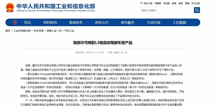 车家号·0浏览·2025-12-16 00:09 · 广东近日,我们从官方渠道获悉,工业和信息化部于 2025 年 12 月 15 日公布首批 L3 级有条件自动驾驶车型准入许可,明确责任主体从驾驶员转向车企。