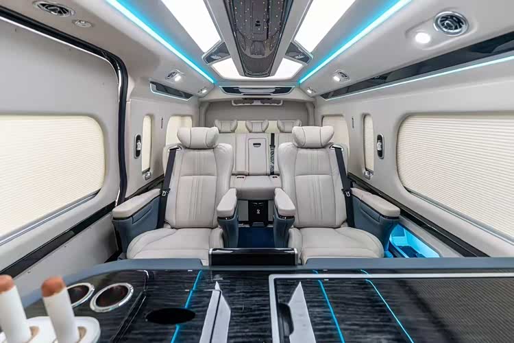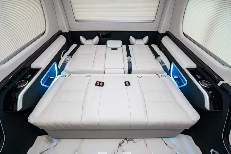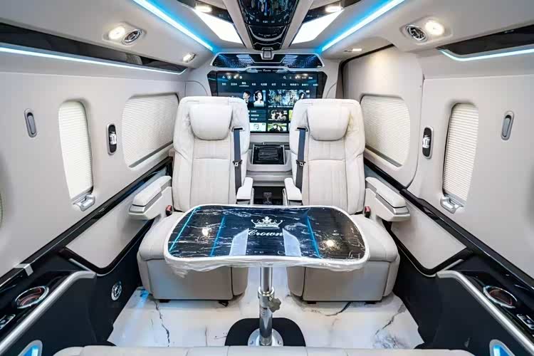 中门扶手包裹的意大利NAPPA真皮,以及高档首长席真皮航空座椅等。这些根据人体工程学设计的座椅,不仅乘坐舒适,还能满足乘客在移动办公中的需求,为领导提供尊贵的乘坐体验。丰田海狮商务车在经过改装后,房车空间宽敞无压迫感。车内采用真皮包覆,并配备了超大屏导航。