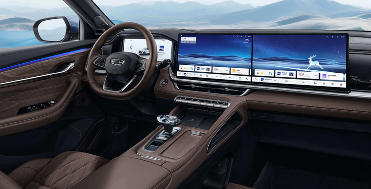 内饰是星越L的核心亮点,堪称“移动的中式豪华座舱”。12.3英寸仪表+双14.6英寸大屏+25.6英寸HUD(覆盖了AR增强现实技术星越L智能座舱的“第四块屏幕”)的四屏联动,搭配高通骁龙8155芯片,操作丝滑无延迟。鸣沙流金环保麂皮内饰搭配256色氛围灯,月泉玉樽水晶挡把质感十足,全车大面积软质材料包裹,触感温润细腻。主驾头枕音响、前排通风/加热/按摩功能,以及后排30°-40°无级调节座椅,让每一席都成为头等舱,540°透明底盘更提升行车安全感。