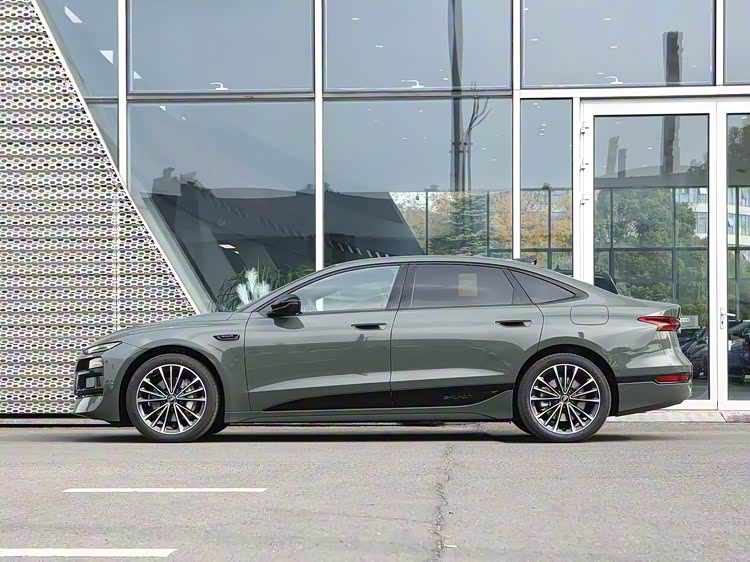 再来看车身侧面部分,车身尺寸达到5073×1942×1522mm,轴距3076mm,修长的比例通过溜背式车顶与隐藏式门把手强化。电子外后视镜不仅降低风阻至0,更通过门板屏幕提供更广视野。20英寸轮毂采用低风阻设计,配合前翼子板处的摄像头,构成华为乾崑智驾系统的感知网络。侧面腰线从前轮拱贯穿至尾灯,在光影下形成"双腰线"效果,既保留行政车的稳重,又增添电动车的未来感。