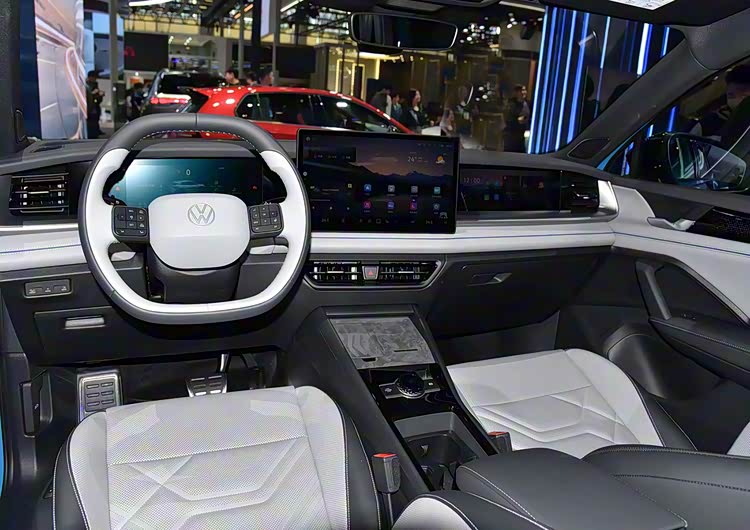 从实车来看,整体外观造型和纯燃油版的探岳L基本一致,内饰部分则是换装了新款的方向盘,下面来详细看一下: