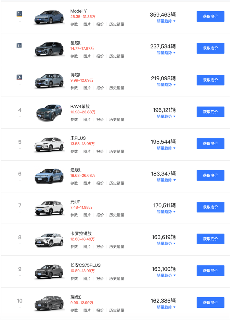尽管新能源汽车渗透率已逼近60%,但销量榜前十名中,燃油车和电动车依然是五五开。这不仅说明燃油车的需求依然很大,而且榜单上的燃油车,都是在电动化浪潮中扛住了市场考验的好产品。