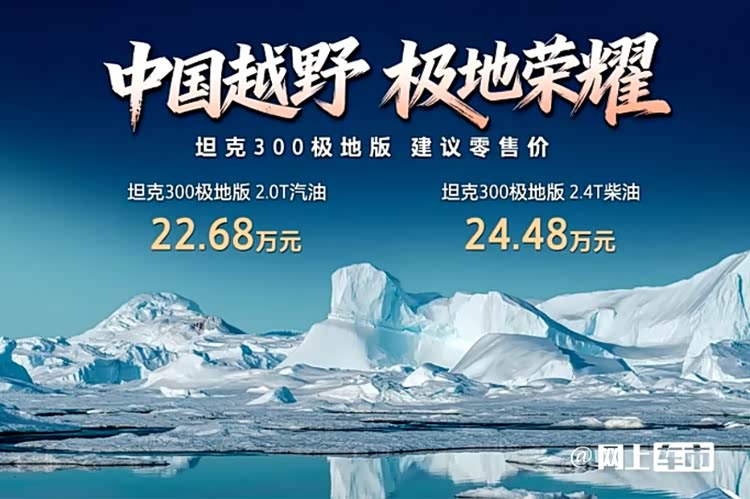 今天之前,坦克300已经推出了13个限定版本了,今天第14个限定版本极地版也上市了,柴油版卖24.48万,汽油版卖22.68万,比普通版分别贵了1万、2.7万。