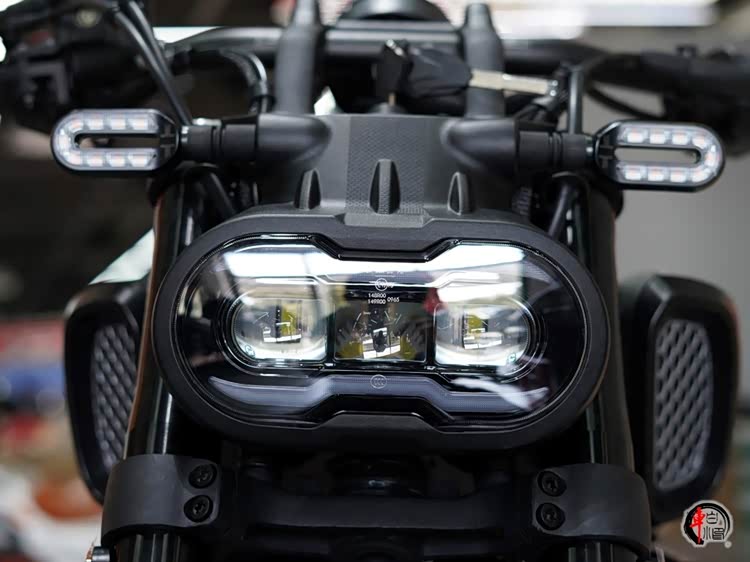 前脸标志性的LED大灯造型独特,内置的三透镜结构在复古造型中透出现代科技感。灯光系统全系采用LED光源,保证了良好的照明效果。U型的转向灯设计与车头线条融合,提升了辨识度。车机系统则是一块圆形的彩色液晶仪表,集成时速、转速、油量等关键信息,并支持第二代T-BOX车联网功能,可实现车辆状态远程查看。
