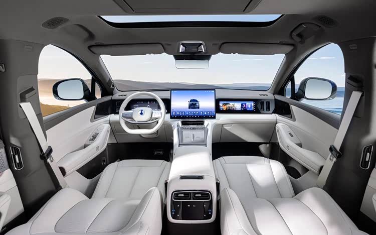 腾势N8L的内饰在用料方面也很讲究,车内有大面积软质材料加以覆盖,中控台设有无线充,座椅的柔软度也比较适中,而且,车内还设置了不少的储物槽,既突出了实用性和质感,也显示出很好的奢华感。当然,标志性的中控大屏依然处于醒目位置。