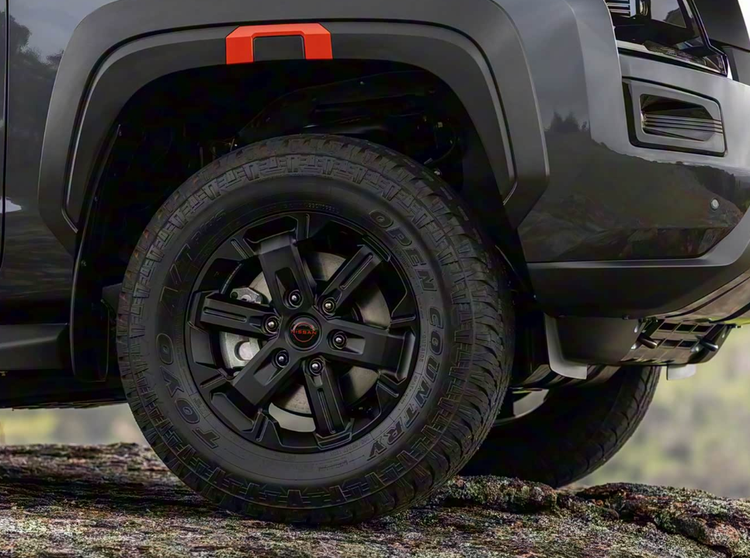 顶配PRO-4X版本:通过“熔岩红”装饰、黑色部件、全地形轮胎和防滚架来彰显身份,这些元素都具有明确的越野或防护功能,而非单纯的美学点缀。
