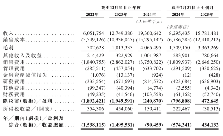 招股书显示,2022年-2024年,公司收入从60.52亿元增至193.61亿元,复合年增长率78.9%,这一增长水平,在15强中国高端新能源车企中排名第三。今年前7个月,公司已实现收入157.82亿元,同比增长90.2%。