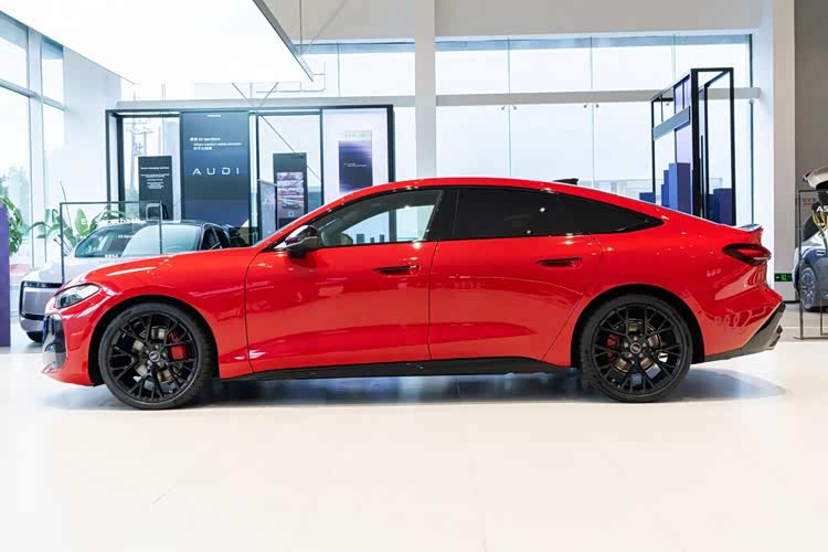 车身尺寸方面,车身长宽高分别为4903/1883/1427毫米,轴距为2992毫米。车身侧面采用的是弧形车顶和溜背式的车尾进行结合,隐藏式的门把手和无边框车门的加入,风阻系数控制在0.28Cd的范围内。碳纤维材质的后视镜外壳呈水滴形设计,配合20英寸RS风格轮圈以及红色刹车卡钳,将运动感勾勒的淋漓尽致。车尾采用的贯穿式的尾灯,加入有黑色灯罩,能够在夜间呈现独特的视觉效果。