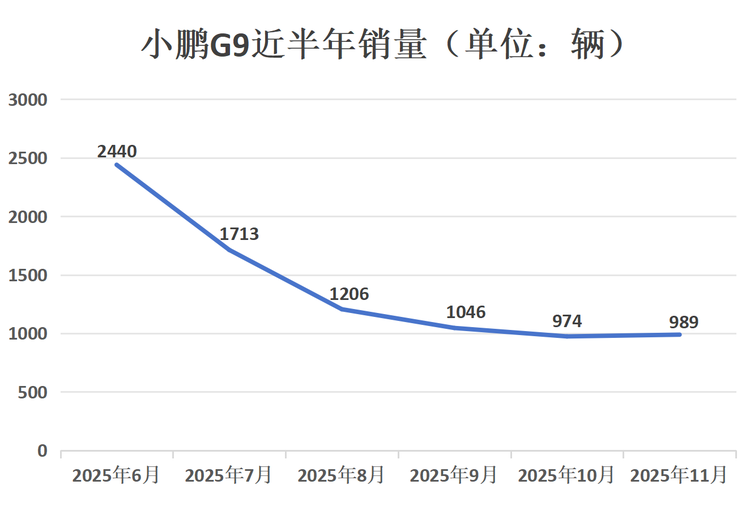 有人说这车卖不好是因为太贵了,当初刚诞生时起步价高达30.99万,顶配卖到了46.99万,可小鹏一直在对这款车价格作出调整,2024款起步价下探到26.39万,现款车型起步价更是低至24.88万。但小鹏G9近半年销量却持续下滑,销量从6月份的2440辆跌到11月的989辆,那么究竟为啥不断降价的小鹏G9依然卖不好?
