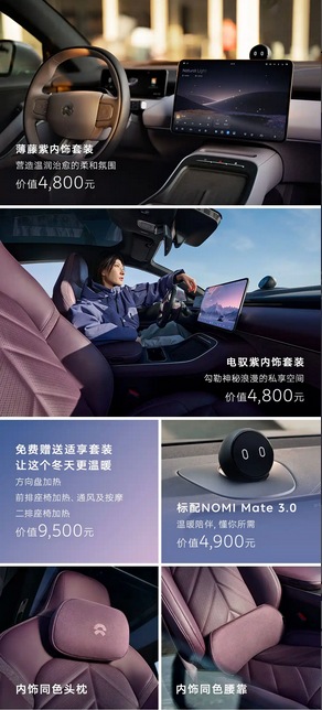 进入车内,远空套装并未在内饰结构上做大幅调整,而是通过配色与触感配置来强化使用体验。薄藤紫与电驭紫两种内饰主题,延续了蔚来一贯的低饱和度思路,在长时间驾驶或夜间行车时,对视觉疲劳的控制较为友好。