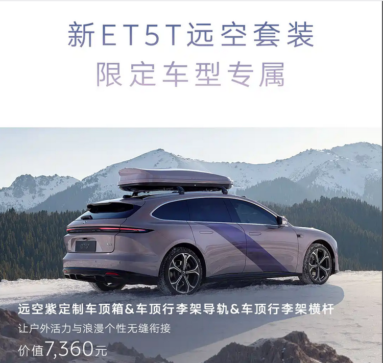 远空套装进一步放大了这一使用场景。ET5T版本配备了车顶行李架导轨、横杆以及与车身风格统一的远空紫车顶箱,在不影响车内空间的前提下,为冬季出行、长途自驾提供了更直接的装载解决方案。这类配置在日常城市通勤中存在感不强,但在假期或跨城使用时,优势会被明显放大。
