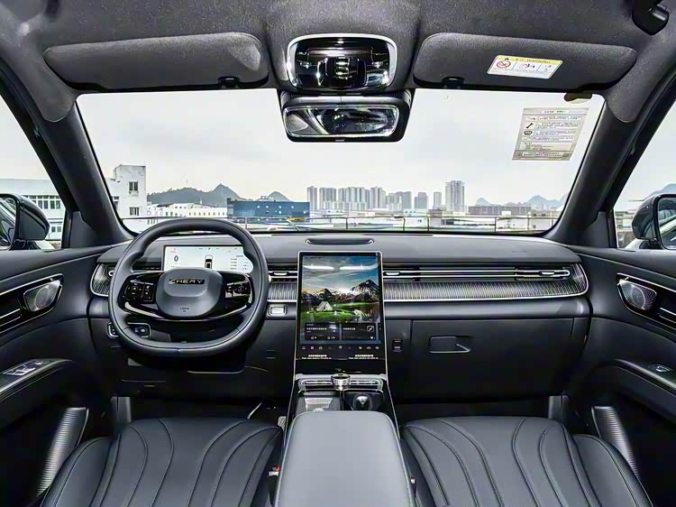 再来看车尾部分,车尾设计堪称点睛之笔,贯穿式祥瑞回纹 LED 熏黑尾灯是核心亮点,夜间点亮后辨识度极高,中央奇瑞 LOGO 融入点状元素,增强高级感。下方采用双边共两出真排气布局,搭配立体式后保险杠,运动气息与车尾厚重感完美平衡。横向线条的大量运用,有效拓宽了车尾视觉宽度,让整车比例更协调。