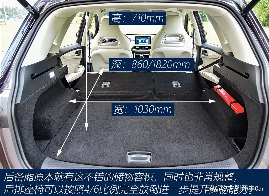 空间表现,试驾者身高是1.75米,把驾驶位调整到合适的坐姿,头部还有大约一拳的余量,这个表现对于同级别的SUV来说,还算是不错的。保持前排座椅不动坐进后排,腿部空间了大概还有一拳三指左右,头部富余一拳,这个表现水平在同级别SUV车型中并不是十分突出。好在这台车是个四驱车型,中央地台隆起并不十分高,对于后排中间乘客的乘坐舒适性不会受到影响;后排座椅靠背能够通过C柱处的扳手进行角度调节,调节范围很大,长途行驶后排乘客的舒适性也能得到保障。