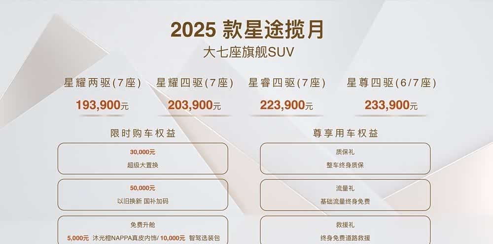 综合来看,2025款星途揽月不仅在价格上更具优势,其配置方面的升级更是令人瞩目。