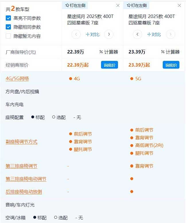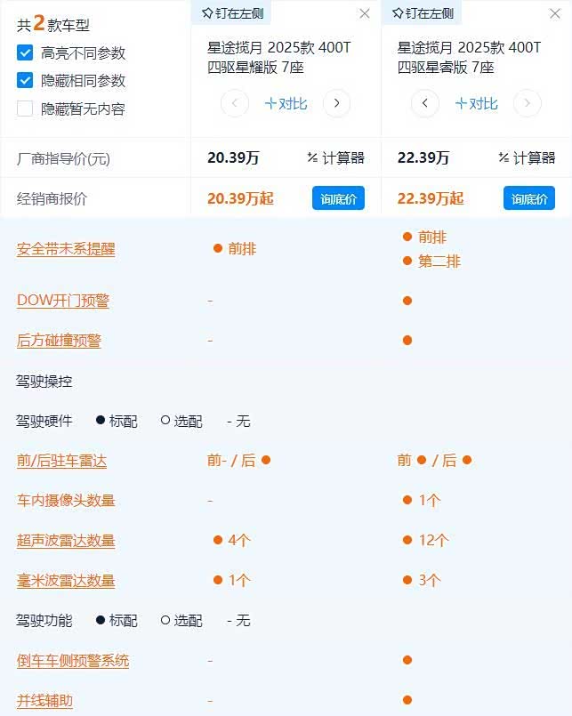 在四驱星耀版与四驱星睿版之间做出选择时,我们需要考虑的是2万元的差价所带来的配置提升。