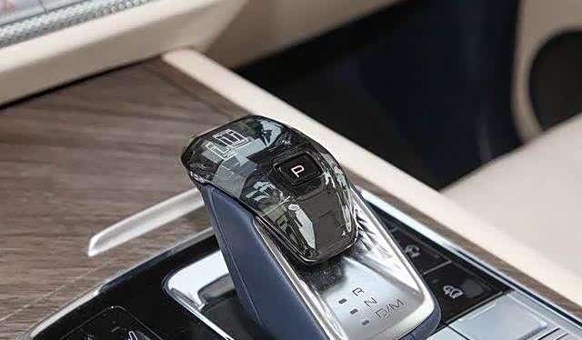 电子档把设计精致小巧,顶部以水晶质感材质作为装饰,显著提升了整体的质感。其周围区域广泛运用镀铬面板和高亮钢琴漆风格的饰板,营造出一种奢华高端的氛围。