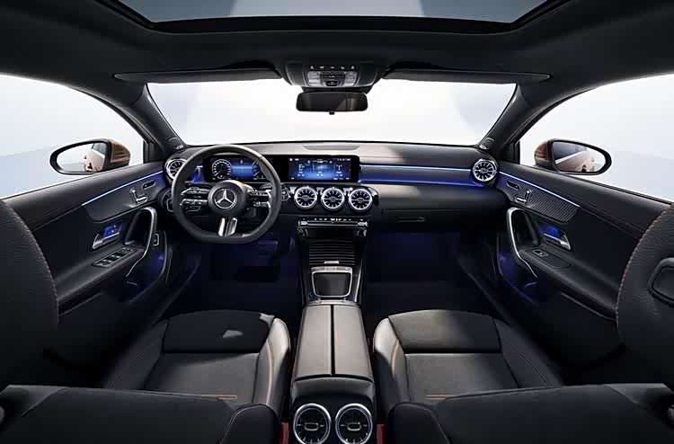 奔驰A级车型提供三厢长轴距和两厢标轴(进口)两种选择,同时推出高性能的A级AMG版本。长轴距A级车型继承了家族式下沉车头车尾设计,线条流畅且造型简约,展现出时尚优雅与豪华气质。其前脸采用夜幕星河格栅,中间醒目地镶嵌三叉星徽标识组合,两侧配备高性能LED大灯,细节精致,颜值极高。