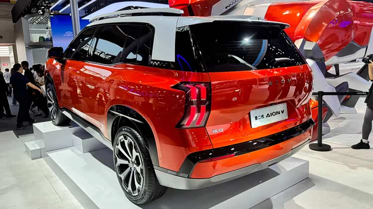 车身侧面尾部与现款车型基本保持一致,仅是车身配色换装为一体色,显得更加的简洁。同时下包围与车身颜色相同,同时在下包围用一条黑色横条一分为二,更有层次感。尾部,下包围调整为一条粗犷的黑色饰条,与前包围相呼应。新车长宽高分别为4590/1854/1660mm,轴距为2775mm,除了车长做了加长处理,其他与现款埃安霸王龙车身尺寸保持一致。
