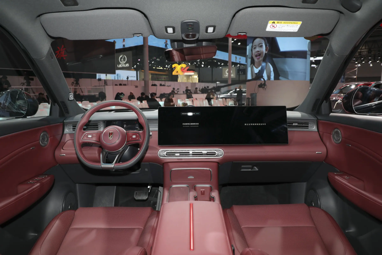 内饰方面,双色搭配的三幅式方向盘、30寸的AR-HUD显示屏、中控+副驾双15.6英寸的双连屏设计,搭载高通骁龙8295P芯片,内置红旗自研“旗偲1.0”系统。