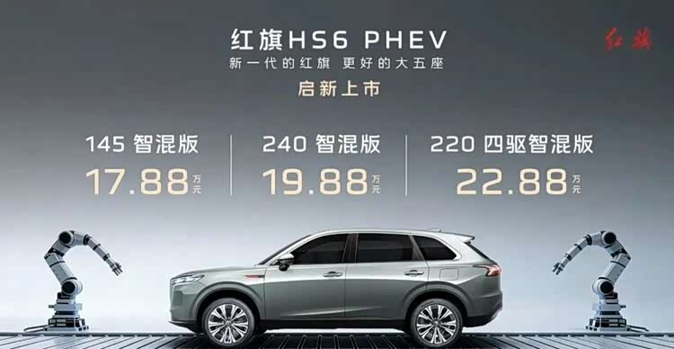 【懂车之道 产品】近日,懂车之道获悉,12月16日,一汽 红旗HS6 PHEV(参数|询价)正式发布上市,共推出3款配置车型,官方售价区间为17.88-22.88万元。新车定位中大型SUV,下面,和大家一起来看看新车的产品力如何?