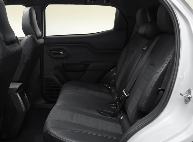 丰田Urban Cruiser车身采用了轿跑SUV的车身,利用弧线形的黑色车顶、白色的车漆涂装、黑色的侧裙与粗犷的轮眉融为一体,强化了跨界车的样式,后门的门把手隐藏于车窗后部,与奕泽IZOA有着异曲同工之妙。黑色的A柱和B柱配合着黑色车顶,也让悬浮式车顶更加立体,若隐若现的车身腰线也显得更加灵动。C柱看上去相当有力,充电口位于左前方翼子板处。作为丰田入门级的纯电SUV车型,Urban Cruiser车身的长宽高分别为4285/1800/1640mm,轴距为2700mm,轴距比YARiS Cross多出了140mm。车内提供了标准的5座布局。