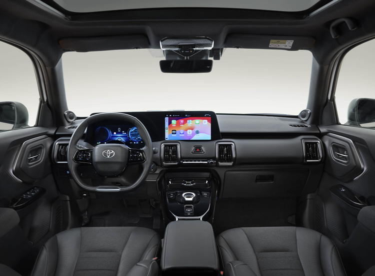 丰田Urban Cruiser座舱采用了大面积黑色软性材质的铺陈,还加入了银色的装饰边框和亮黑色钢琴烤漆装饰面板,前排撇被了包裹性和支撑性更好的运动型座椅,后排则配备了沙发座椅,后排的地台纯平,对后排中间乘客更加友好,还提供了后排出风口,麻雀虽小五脏俱全。中控台配备了上下削平的多功能方向盘,正方形的空调出风口,10.25英寸的仪表屏和10.1英寸的中控屏,内置丰田最新的车机系统,支持主流的手机互联,还带有全景影像、JBL音响、碰撞预警、自适应巡航等等。