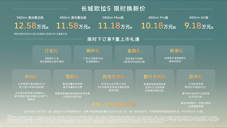 近日,长城欧拉全新A级纯电SUV 欧拉5(参数|询价)正式上市,新车推出5款配置,建议零售价区间9.98万至13.38万元,限时换新价低至9.18万元起,包含至高5000元以旧换新补贴;即日起至12月31日,用户下订锁单可尊享订金礼、换新礼等9重上市好礼,另有跨年购置税补贴(不含480km Air版)加持。这份诚意满满的价格与权益组合,不仅精准击中年轻用户的购车敏感点,更揭开了欧拉品牌从单一纯电赛道向“多动力全球时尚精品汽车品牌”进阶的序幕,欧拉5绝非简单的产品迭代,而是长城汽车以底层技术革新重构市场竞争逻辑的战略落子。
