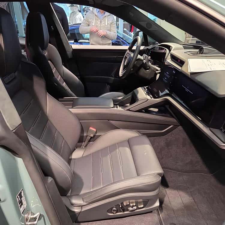 这款车内部采用了创新的设计风格,充满了科技氛围,展现出坚韧的线条。它配备了14.25英寸的OLED全液晶显示设备,12.25英寸的中控显示屏,以及14.9英寸的副驾驶显示屏。方向盘的设计融入了运动元素。