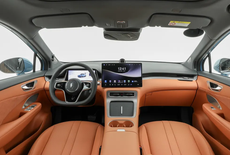 来到内饰,打开车门的第一眼就感觉很时尚,虽然是双色搭配但内饰给人感觉很清爽,轻简约。虽然是入门级SUV但是用料也不会含糊,在车门处运用到更多的皮革材质包裹,橘色部分展现出更多一体化的气息,在缝线工艺这些都很细腻,我觉得国产车里就华为的品控最好。不论是视觉上还摸起来的质感都很高级,座椅的填充也很饱满很柔软,坐上去很舒服。并且配合非常丰富,像电动座椅多向调节,部分车型带加热通风和按摩,怀挡的设计,感应雨刮、电动后视镜带加热,后方来车提醒、以及50瓦的无线充和C型接口都有,双水杯架和扶手质感都很高级。科技上也有10.25英寸的液晶仪表,15.6英寸中控屏都很抢眼,并且搭载道路救援呼叫功能。