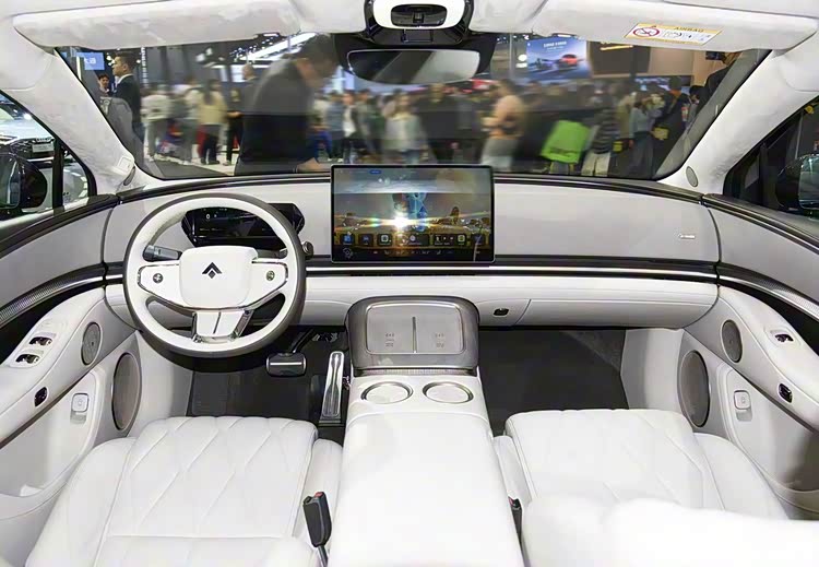 内饰部分,中控台使用了环抱式的布局,中控面板很简洁干练,使用了半悬浮式仪表盘和悬浮式的中控大屏,车机采用的是HarmonySpace 5 鸿蒙系统,空调出风口为贯穿式的风格。