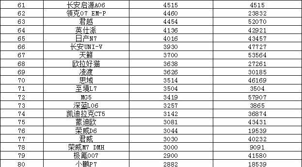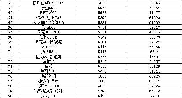宏光MINIEV继续领衔,另外Model 3销量再创辉煌,今年新高。 海豹05 DM-i(参数|询价)新款车型加量不加价,续航升级之后销量也首次突破2万辆大关。
