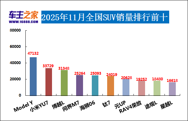2025年11月SUV销量排行前十(单位:辆)