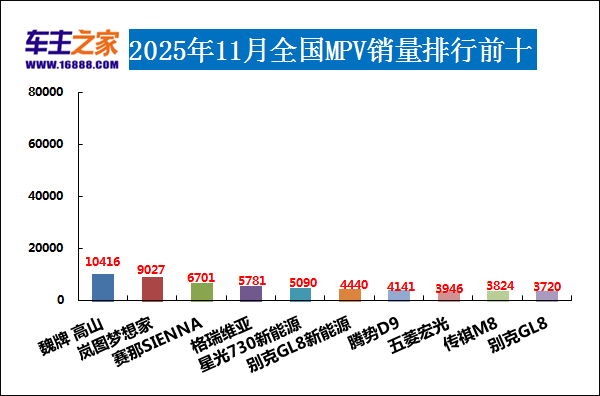2025年11月MPV销量排行前十(单位:辆)
