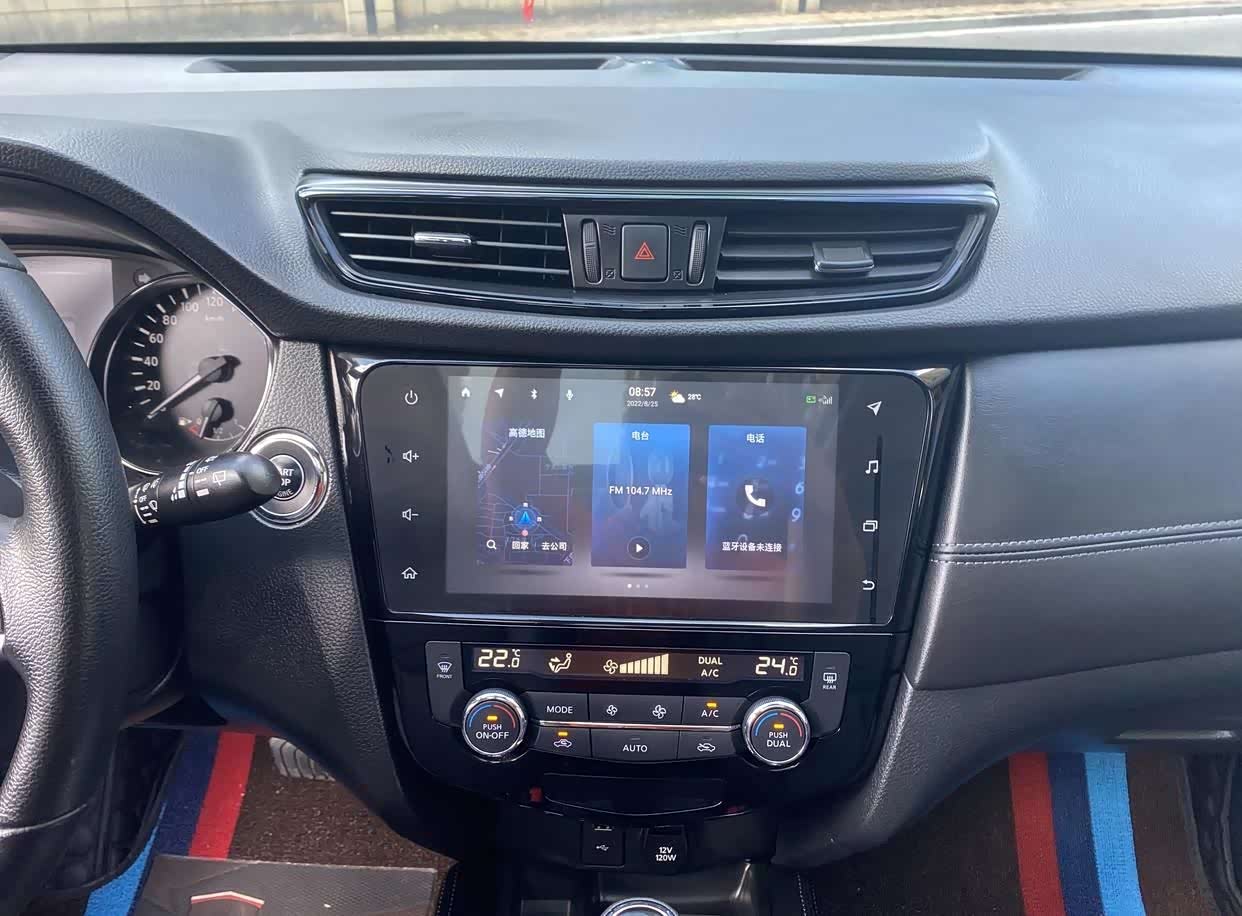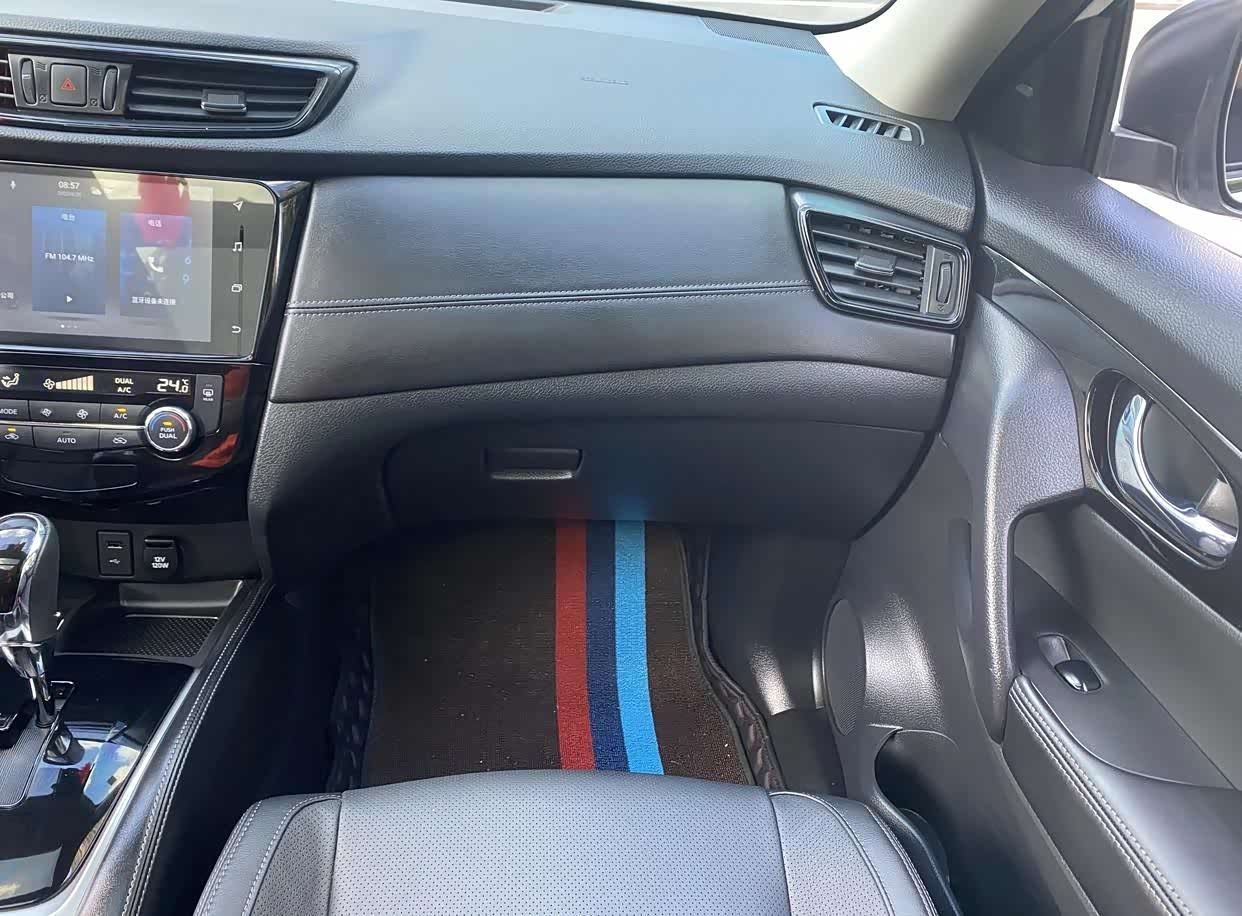 内饰上,奇骏延续了日产家族的座舱设计,中控台对称且功能划分明晰。车内采用大面积搪塑材质,提升了整体质感。三幅式多功能方向盘搭配银色镀铬装饰,增添了一丝运动感。全新的Nissan Connect超智联车联网系统则为用户带来了智能化的出行体验。