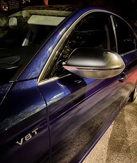 在夜晚清洗车辆后,那对银耳后视镜在灯光下熠熠生辉,令人想起小时候翻阅《汽车之友》杂志时,便被海外C5底盘奥迪RS6的银耳所吸引,自此对银耳后视镜怀有独特偏爱。欧洲性能车似乎对蓝色情有独钟,宝马有勒芒蓝,奥迪有雪邦蓝。这辆S8所涂的雪邦蓝漆,在夜晚灯光的映照下,展现出非凡质感,即使是不懂车的人,也能感受到它的与众不同。