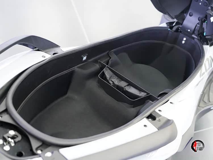 底盘车身采用高强度钢管车架,整备质量186kg。对于这个尺寸的踏板而言,重量管理尚可,但庞大的身躯多少影响低速挪车和狭窄空间的灵活性。770mm的座高对大多数骑手比较友好。其真正的优势在于空间:座椅宽大舒适,并带有腰靠设计。座桶空间足以容纳两顶全盔,让它“旅行踏板”的定位得以坐实。配合17升油箱,为长距离摩旅奠定坚实基础。