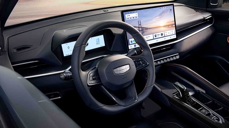 进入车内,Battle版构建了一个沉浸式的竞速座舱。麂皮材质的大量应用是提升质感的关键,环抱式座舱设计搭配多处甄选的麂皮包裹,触感细腻柔和。豪华麂皮双拼座椅不仅提供出色的支撑性与包裹感,其双色设计与缝线工艺更在竞技氛围中注入了轻奢质感。细节之处,碳纤维风格装饰面板覆盖于方向盘、中控台等关键区域,竞速光轨氛围灯带划破座舱的暗夜,而一抹亮眼的橙色运动安全带,则成为激活驾驶激情的开关,共同营造出强烈且专注的驾驶氛围。