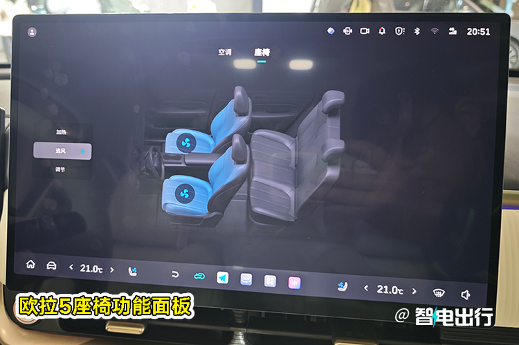 舒适性上欧拉5相比零跑B10最有优势的就是主副驾都配备了座椅通风加热,以及副驾驶的腿托。而B10的副驾上只有一个座椅加热功能,副驾经常坐人的朋友们需要斟酌一下。