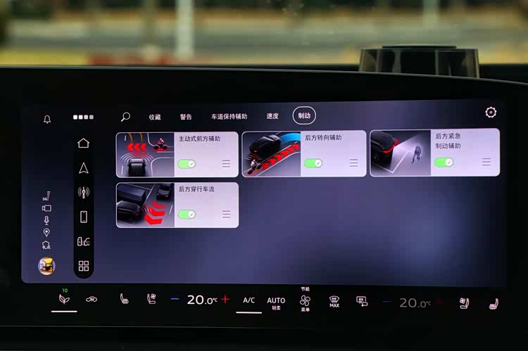 比如智能座舱,11.9英寸仪表+14.5英寸中控+10.9英寸副驾娱乐屏+88英寸AR-HUD,坐进驾驶席的一刻,你一定会被Q6L e-tron带来的多屏联动吸引,科技感拉满了。不论是仪表盘的显示细腻程度,还是中控屏的丝滑度以及功能性,都让人耳目一新。