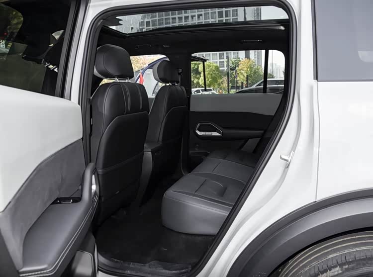 配置升级聚焦智能与安全,配备福域辅助驾驶系统,依托双NVIDIA Orin-X芯片与31个高精度传感器(含激光雷达),总算力达508 TOPS,支持高速NOA与越野路况实时预警。全速域ACC、车道居中保持等功能一应俱全,AEB自动刹停系统可识别夜间行人与骑行者,配合10个安全气囊与1500MPa高强度笼形车身,形成全方位防护。全系标配的6.6kW V2L外放电功能,支持双路同时供电,成为户外露营的“移动电站”。