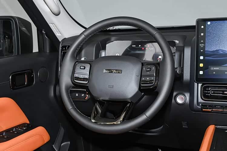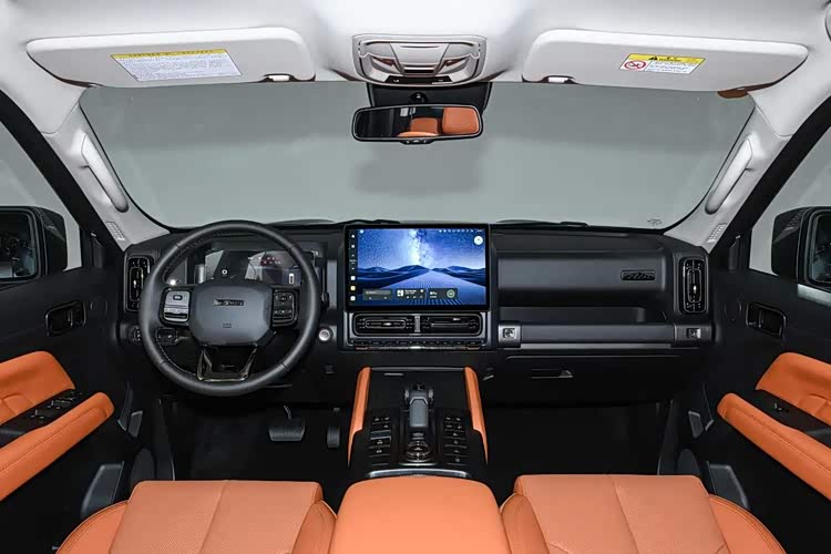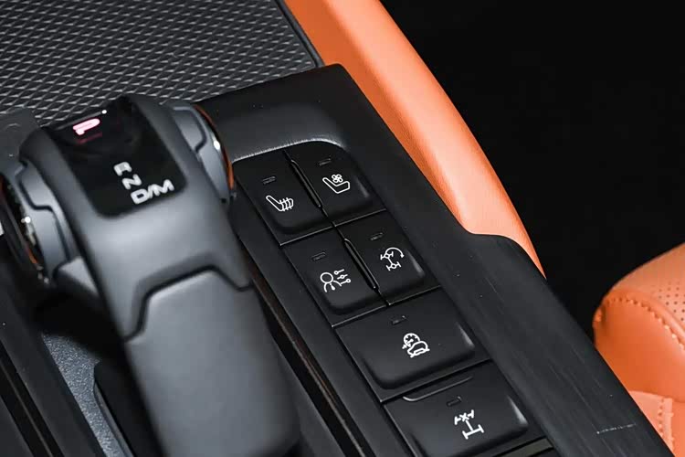在内饰设计上,哈弗H9穿越版继承了当前的设计理念,并选择了黑色与棕色的组合方式。车辆内部的中央控制台由一个10.25英寸的液晶显示屏和一个14.6英寸的悬浮中控屏构成,它支持HUAWEI HiCar/Carlink手机互联映射、车辆网络连接以及与原厂手机的互联等多种功能。在副驾驶的前方,有一个扶手被保留下来,并在换挡杆的周围设置了密集的实体按键,以便于在行车过程中进行盲操作。该车的中排挡杆区域集成了越野功能按键,并且还配备了三个差速锁,驾驶模式的切换则是通过旋钮来实现的。