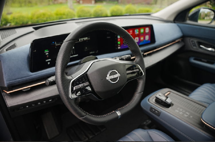 在内饰设计上,这款新车将吸取Ariya EV和新款楼兰的设计元素。左侧是由皮革制成的三幅式多功能方向盘,而前方则是一个由液晶仪表盘和中控显示屏构成的一体式大屏。此外,空调出风口采用了贯穿式设计,并取消了许多物理按键,从而显著提升了科技感。
