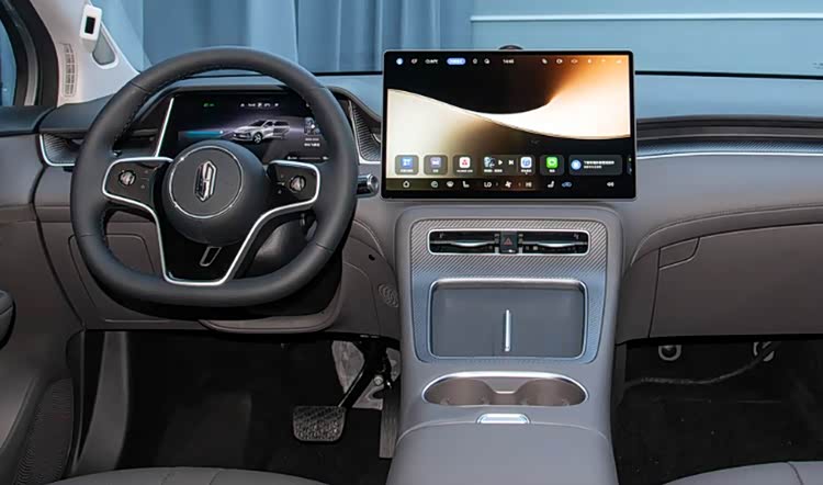 座椅布局为五座的尚界H5,内饰方面也采用了看似简约但不简单的风格,扁平的空调出风口,平底式多功能方向盘,干净的中控台,软硬适中的座椅以及醒目的中控大屏等,既透着时尚感和实用性,也显示出一定的科技感。